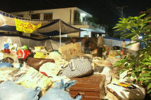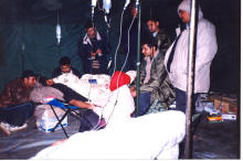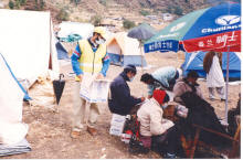 trucks with tents, sheets, medicines, hospital setup, quilts, milk, flour,
