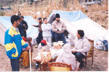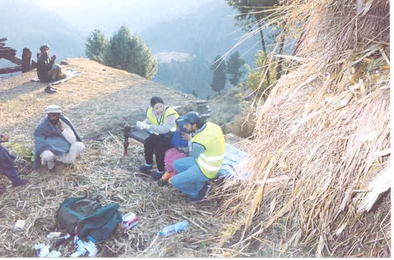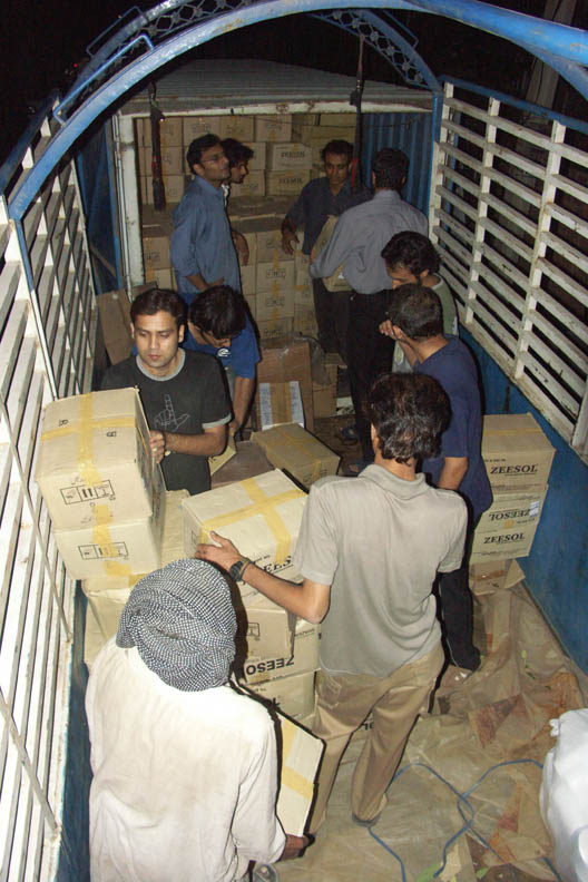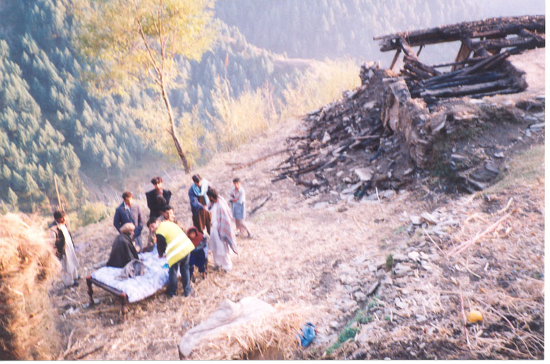 Chanar Kot. While we were unloading our trucks we saw a jeep surrounded by