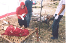 the villagers, a woman taking her last breaths was lying in the lap of her