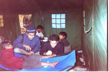 inside a weather proof Chinese tent, where Akbar, and Shani (recently