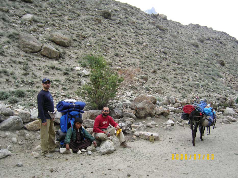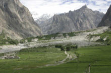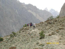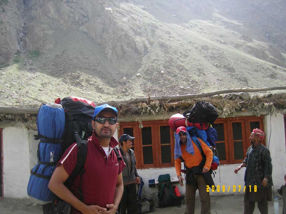 | Hushey Village: Hushey is the last and a very small village with just one little hotel at the end of the valley. Rooms are small and not clean you can camp in the compound. Hotel's owner is experienced and hospitable, he can cook almost every thing. We spend the night in a mud room before the hotel. Porters are easily available. Each porters carry max. 25 kg weight (rate per porter per day was Rs.___ in year 2006). We also hired a donkey which can carry up to 75 Kg and saves money. Its a very busy track for foreigners that's why the porters are bit expensive as compare to other places. |
