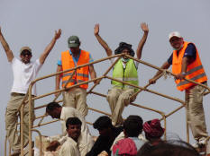 with the help of jeeps, boats and even tractor trolleys, which ensured