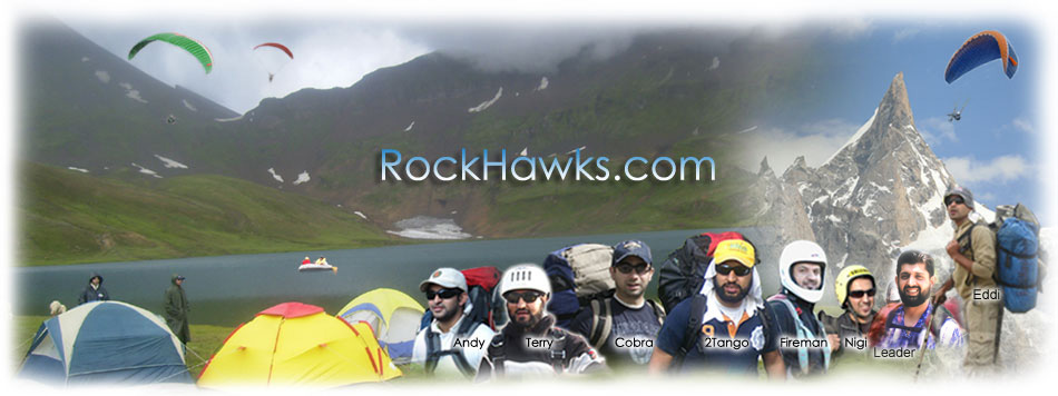 RockHawks: was formed by Sarfraz, Hyder, Ali, Yousaf and Atif - a group of friends belonging to diverse walks of life with one passion in common -to explore and preserve the boundless beauty of Northern Pakistan. Our team is completely non-commercial and is open to people sharing the same obsession. The Mission: The Mission of Rock Hawks is very clear; to learn discipline and devotion, to seek the Ultimate Truth. The other purpose is to introduce this addiction to other enthusiasts to show them what exotic & breath taking locations exist in this part of the world. |
